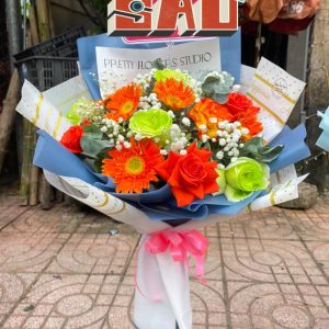 Sản phẩm Hoa tươi thành phẩm có thể gần giống với mẫu 95% - tùy thuộc vào cảm nhận của khách hàng vì là sản phẩm thủ công".